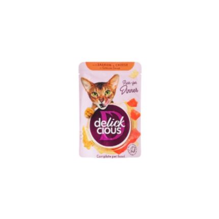 DELICKCIOUS CAT POUCHES 85GR SALMON&CHEESE IN CREAMY SOUP BBD 25/11/27 ( 1 X 12 )