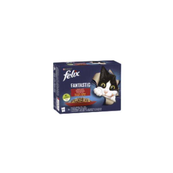 FELIX POUCHES 12X85GR FANTASTIC FARM (BEEF-RABBIT-LAMB-CHICKEN) IN JELLY BBD 06/27 ( 1 X 6 )
