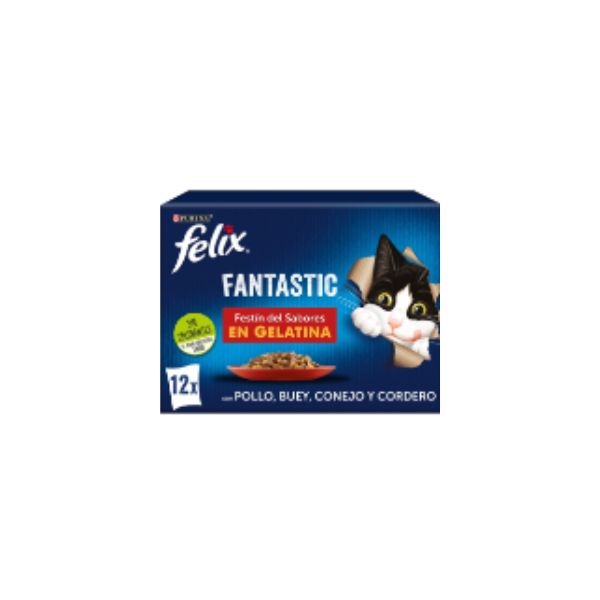 FELIX POUCHES 12X85GR FANTASTIC MIX ( CHICKEN-BEEF-RABBIT-LAMB) IN JELLY BBD 06/27 ( 1 X 6 )