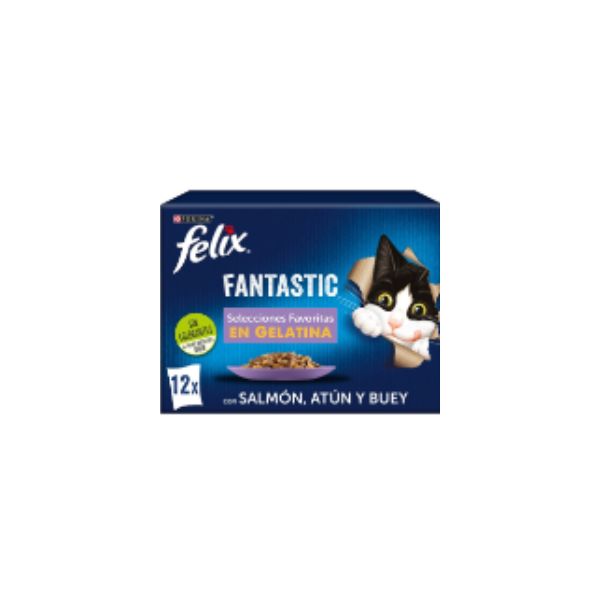 FELIX POUCHES 12X85GR FANTASTIC MIX ( CHICKEN-SALMON-TUNA-BEEF) IN JELLY BBD 06/27 ( 1 X 6 )