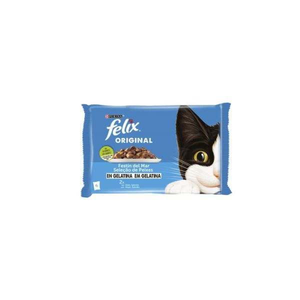 FELIX POUCHES 4X85GR ORIGINAL MIX TUNA & SALMON IN JELLY BBD 05/27 ( 1 X 12 )