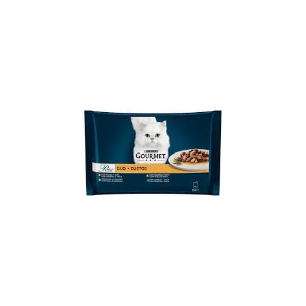GOURMET PERLE POUCHES 4X85GR CHICKEN & BEEF BBD 02/27 ( 1 X 12 )