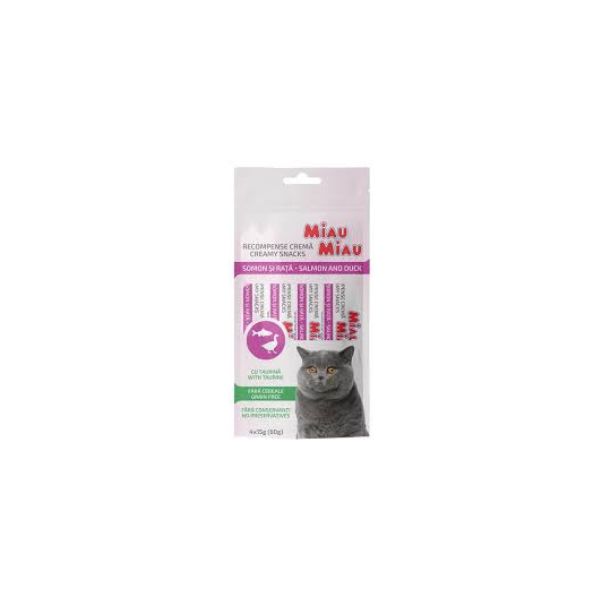 MIAU MIAU CREAMY SNACK SALMON & DUCK 4X15GR BBD 24/11/26 ( 1 X 12 )