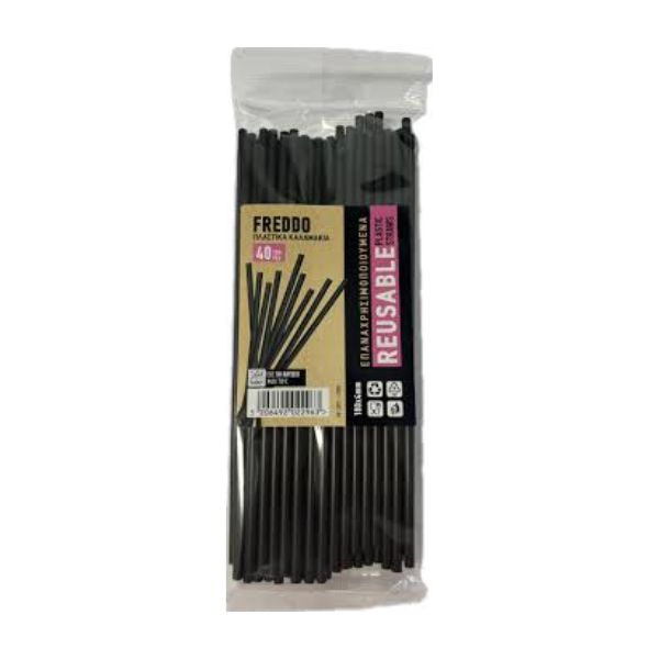 PLASTIKA KALAMAKIA REUSABLE BLACK FREDDO STRAWS 18CM 40 PIECES ( 1 X 60 )