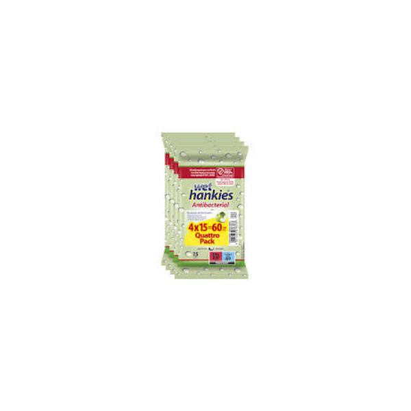 WET HANKIES ANTIBACT.15PIECES APPLE 4PACK GREEN BBD 03/27 ( 1 X 24 )