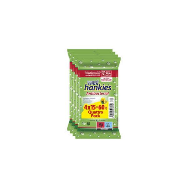 WET HANKIES LEMON ANTIBACT. 15S 4PACK GREEN BBD 06/27 ( 1 X 24 )