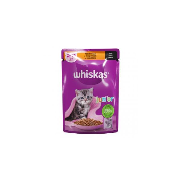 WHISKAS POUCHES 85GR 2-12 JUNIOR WITH POULTRY BBD 29/01/27 ( 1 X 28 )
